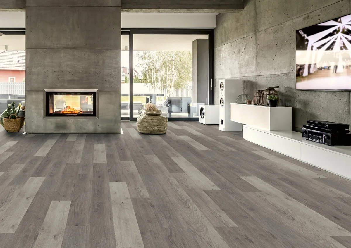 Sivo drvo modernog izgleda s blagim industrijskim karakterom.